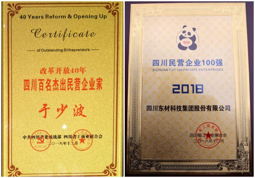熱烈祝賀東材科技黨委書記、董事長于少波榮獲“改革開放40年四川百名杰出民營企業家”光榮稱號