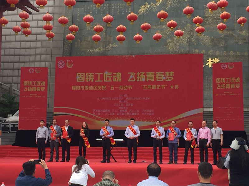 4月27日下午3點,綿陽市游仙區慶?!拔逡粍趧庸潯?、“五四青年節”大會在越王樓廣場舉行。我公司新材料研發部部長黃杰榮獲綿陽市游仙區2017年“工人先鋒”稱號,并在本次大會上受到表彰。 大會號召學習“固鑄工匠魂”精神,在工作崗位上創新實干,做到無怨無悔;大會希望所有工人在越平凡的工作崗位上 越發不凡,...
